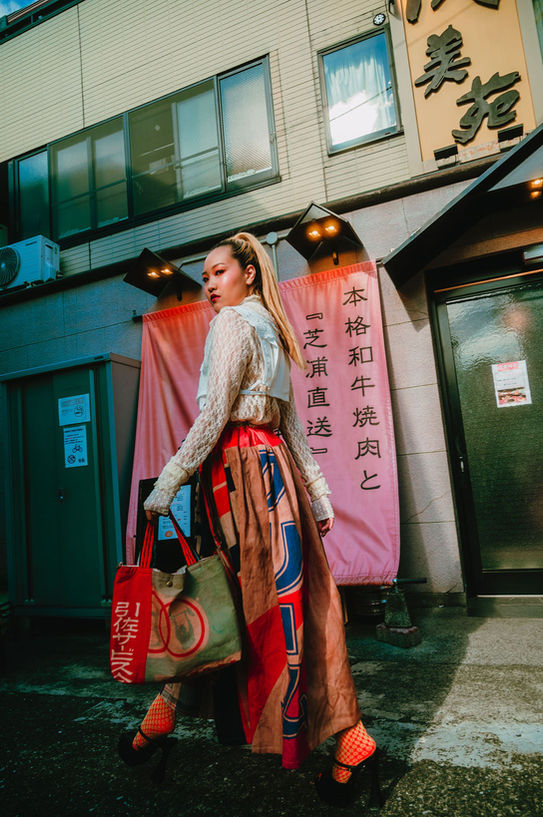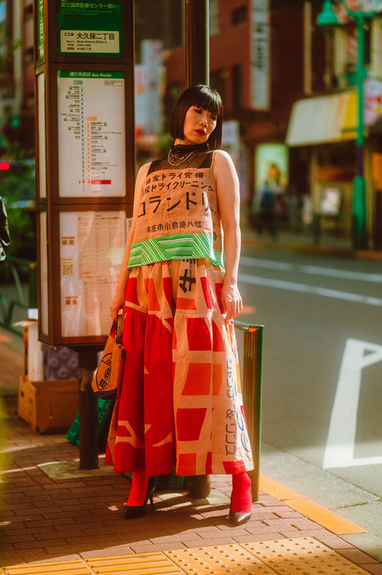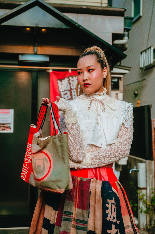 My name is Momoyo Stoby, founder and designer of MOMOYO STOBY FASHION. I create one-of-a-kind garments and bags by giving new life to materials that have completed their original purpose, such as Showa-era(1926-1989) Japanese tenugui cotton towels, vintage nobori banners, and even older textiles.